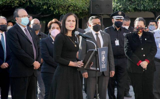 La alcaldesa Alejandra Gutiérrez, entregó a la esposa e hijos del policía abatido el pasado 5 de octubre el reconocimiento “Yo Soy de León”
