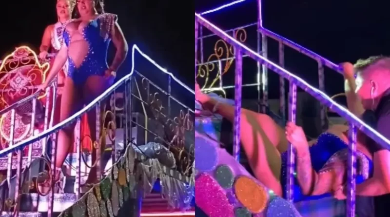 Por medio de un video en TikTok, una persona grabó el momento en el que Kimberly la más preciosa comenzó a bailar sensualmente, pero no todo le salió bien y quedó acostada sobre las escaleras del carro alegórico.