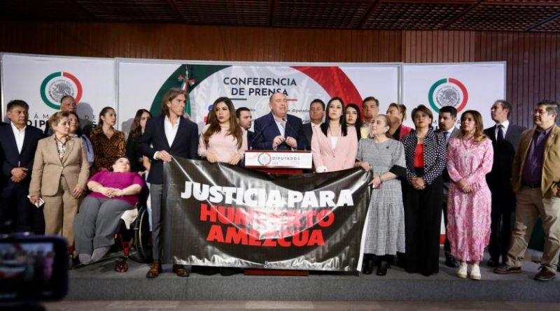 Acompañado de la diputada jalisciense Cuquis Camarena, del vicecoordinador del PAN, Elías Lixa y del líder del PRD, Francisco Huacus, Rubén Moreira y los legislados se manifestaron con una manta en la que se leía el nombre de Humberto Amezcua.