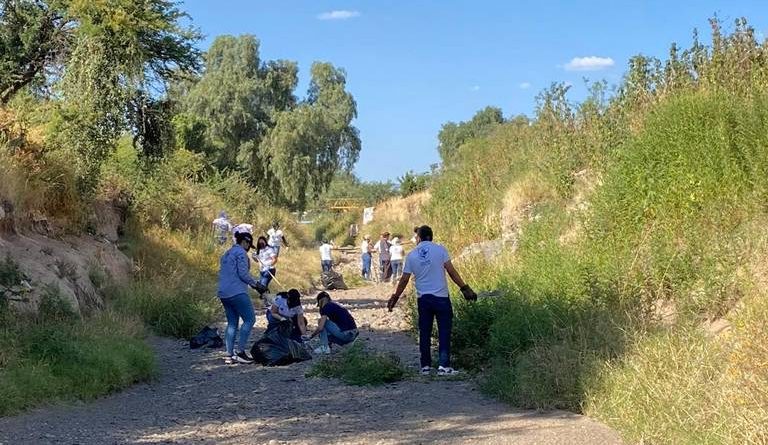 Un grupo de 80 mujeres y hombres que integran el Instituto Municipal de Vivienda de León (IMUVI) se sumaron a las actividades de limpieza del cauce del arroyo Alfaro.
